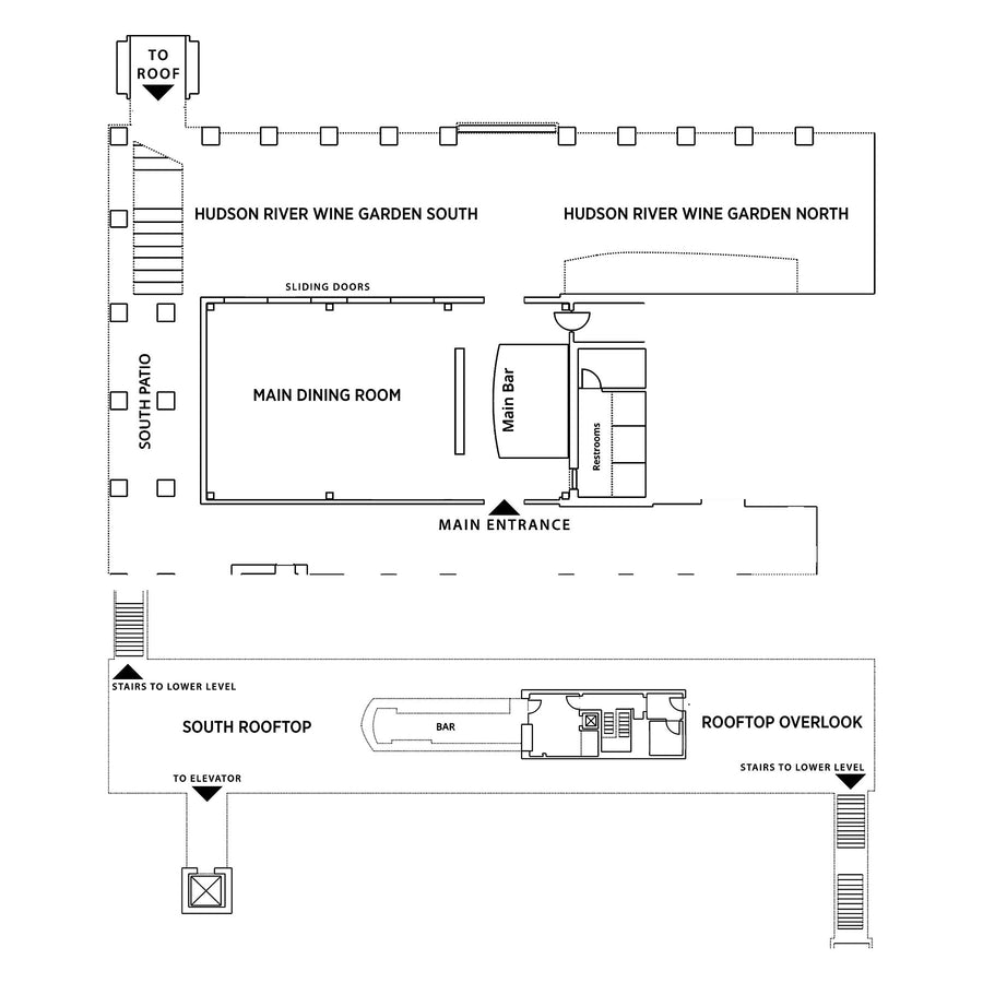- Our most private space, accessible by elevator or stairs, has North facing rooftop views of the city and Hudson River