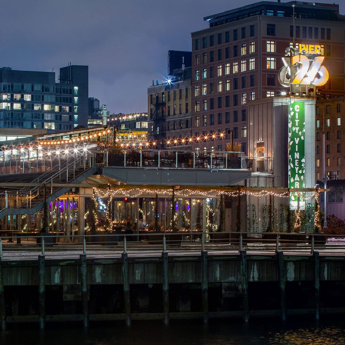- Adjacent to the main dining room, City Vineyard's Hudson River Wine Garden provides a sprawling outdoor event space with unmatched waterfront views