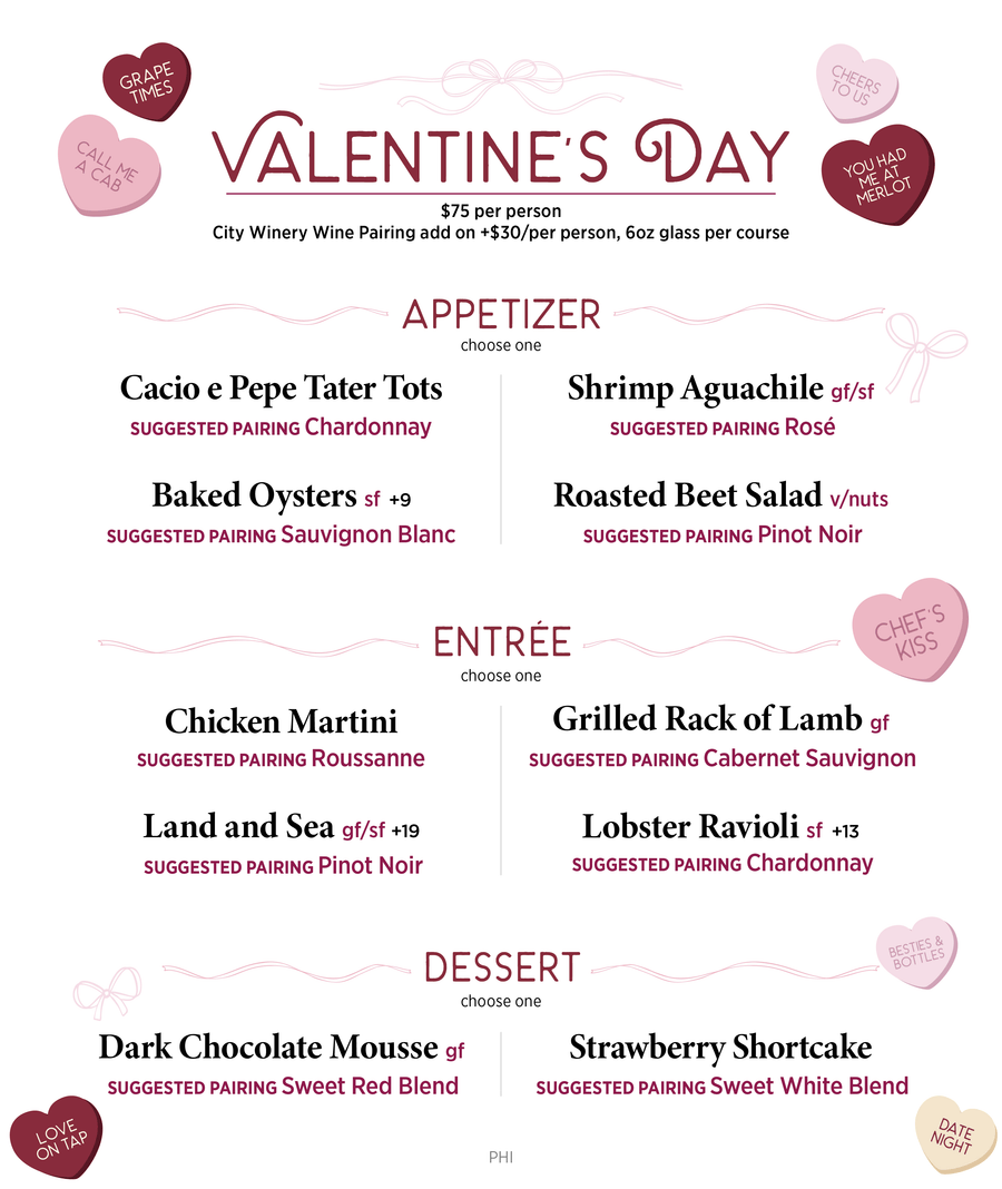 Join us for a Valentine’s Day prix fixe dinner that's centered on connection in every form. Enjoy a thoughtfully curated dining experience designed to bring people together over great food, wine, and conversation. It’s an evening meant to linger, celebrate, and savor the joy of sharing a table.